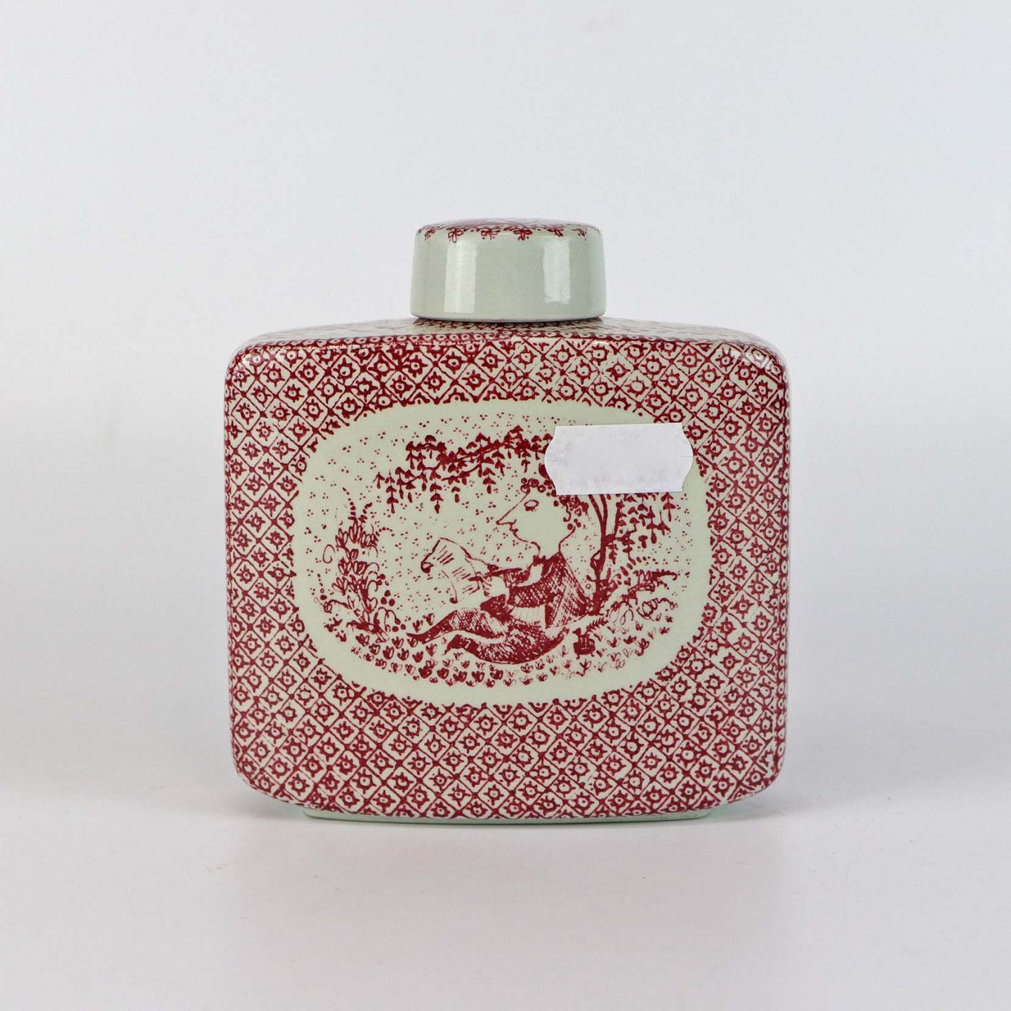 Firkantet porcelænsflaske med top i rød dekoration no 3180-302