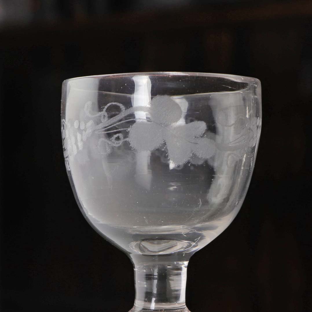 Antik Mylenberg hedvinsglas med vinløvs slebet mønster dateret år 1852-1964