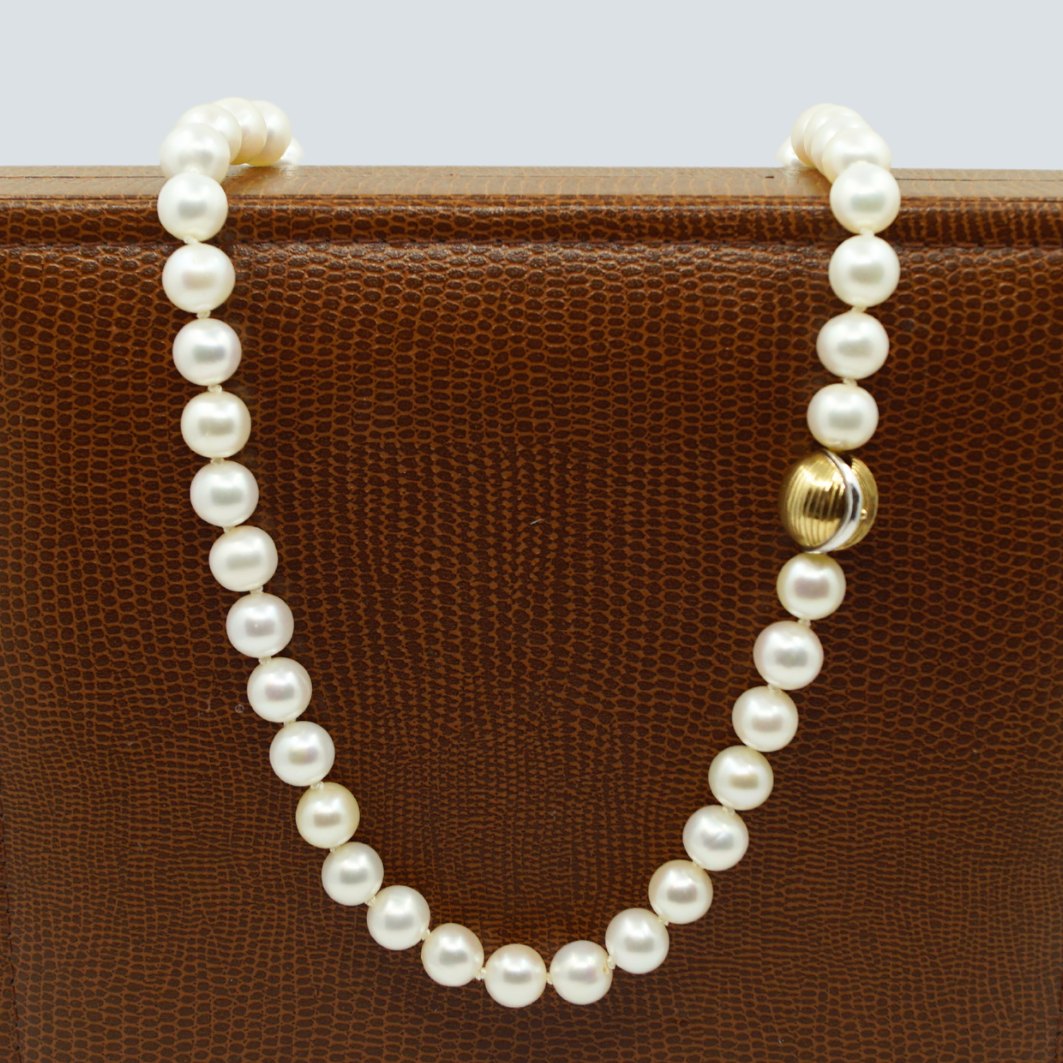Sold with a pearl necklace of white pearls, 9 mm.