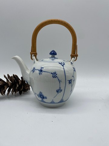 Royal Copenhagen riflet musselmalet tekande med bambums hank. Nr. 140 låg nr. 139. Måler 14cm høj ved låg. 1. sort. Hel og fin stand. lidt brugspor. Pris 2150kr.