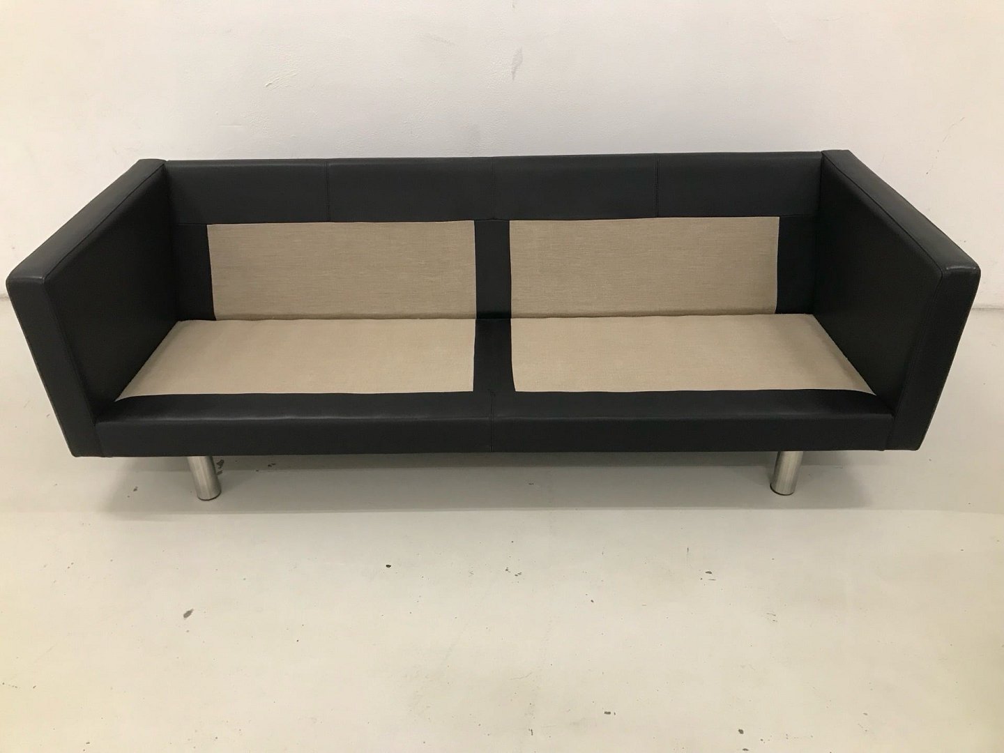 Handy sofaen fra Nielaus bygger på dansk design og rene linjer. Sofaen har en god siddekomfort findes i et utal af varianter. Handy-serien er et modulsystem, hvilket gør at du kan sammensætte præcis den Nielaus Handy sofa, som passer til dig og dit hjem. Udover forskellige størrelser, findes der også mange varianter af ben samt polstring i stof eller læder. Denne 3 pers. sofa i Handy-serien fra Nielaus er polstret med sort Arizona 100 læder og er monteret med H02 rustfri stål ben.