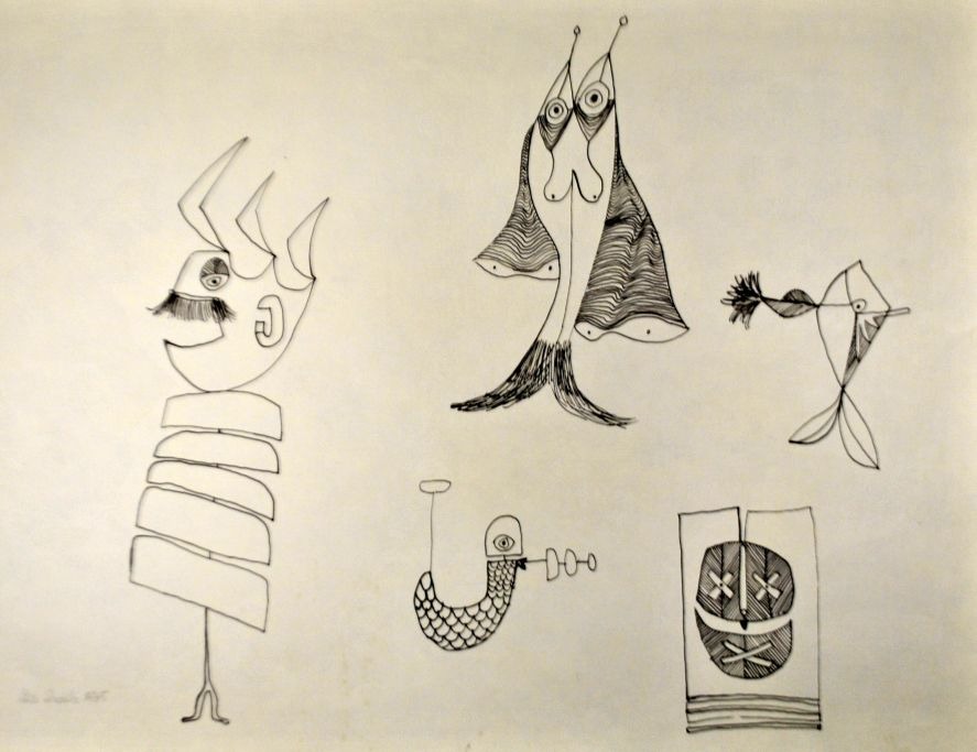 Zwick, Lis (1942- 2020) Danmark/Sverige: Fantasi dyr. Tusch på papir. Signeret: Lis Zwick 1975. 38 x 53 cm.