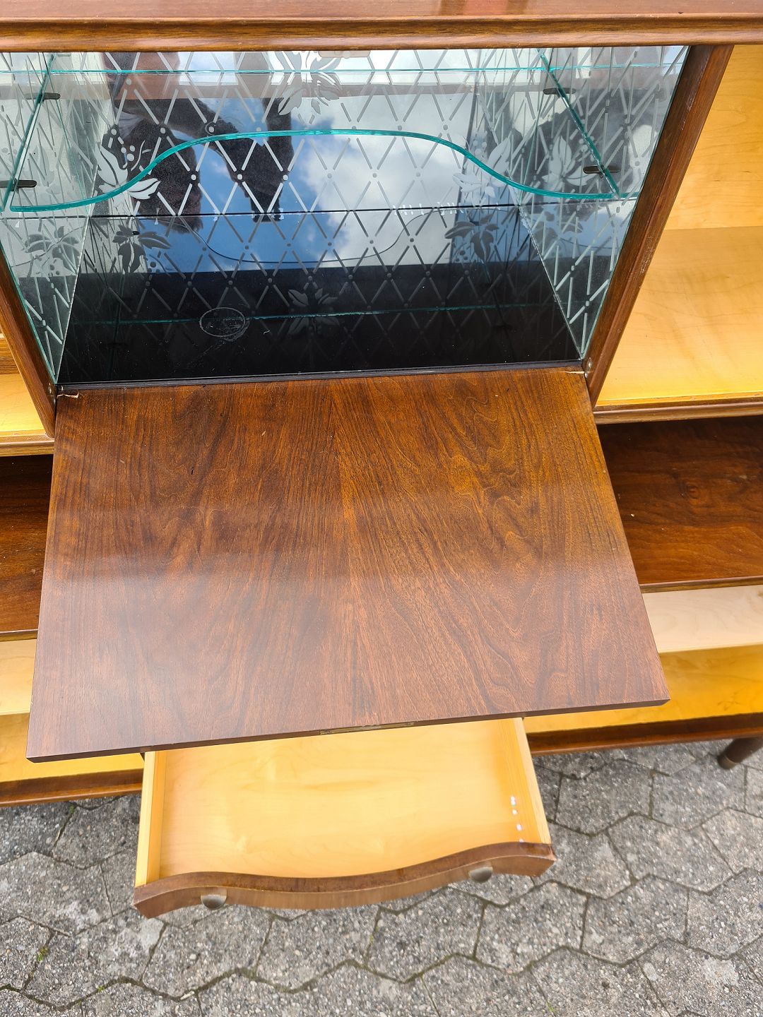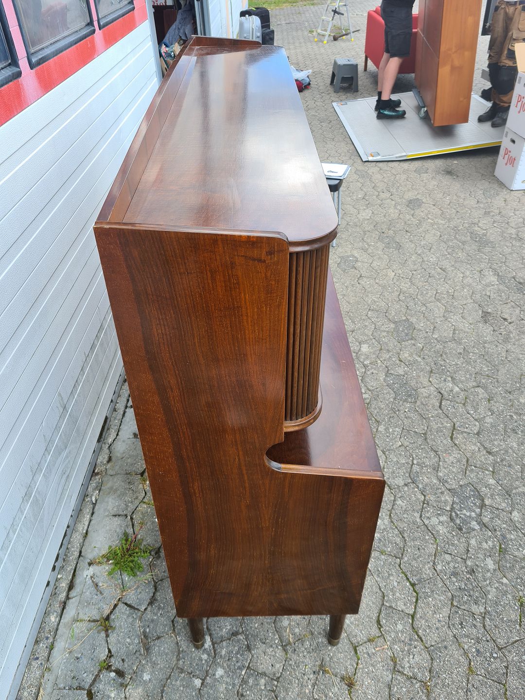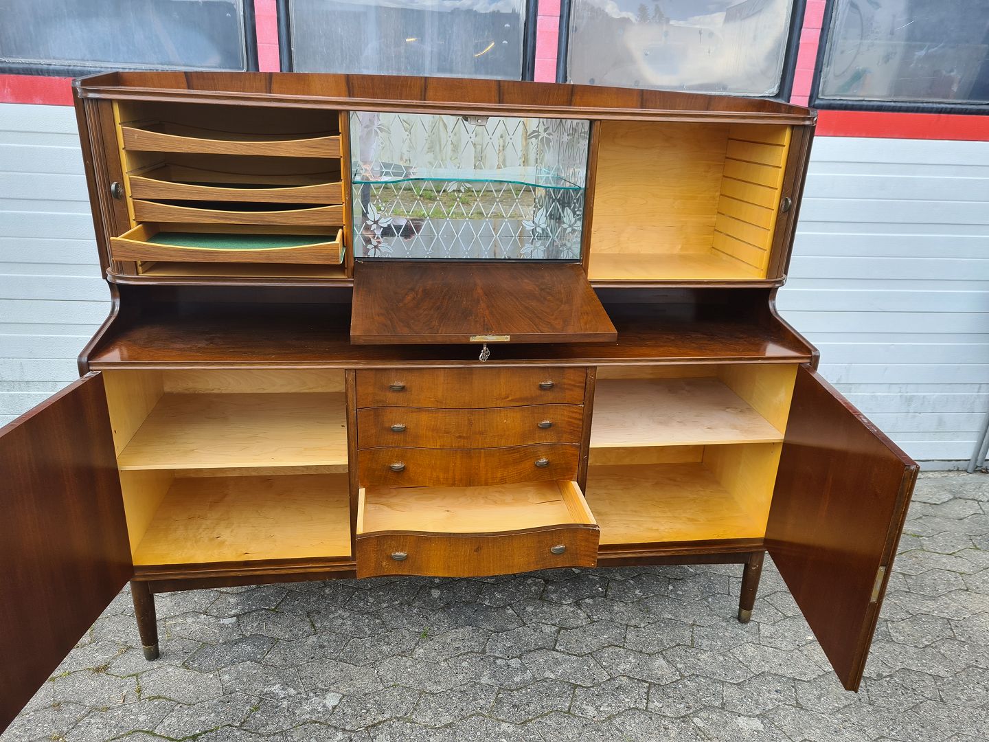 Dækketøjsskab i fineret nødetræ, fra 1950erne.