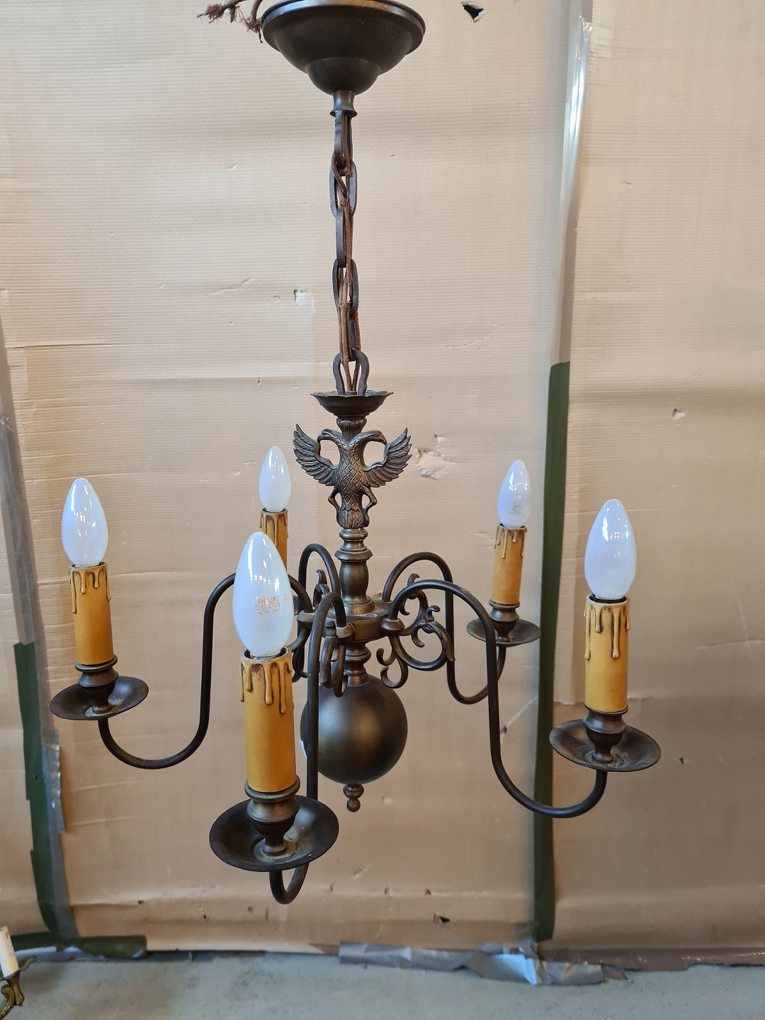 5-Armet kirkekrone i bruneret messing, fra 1930erne.