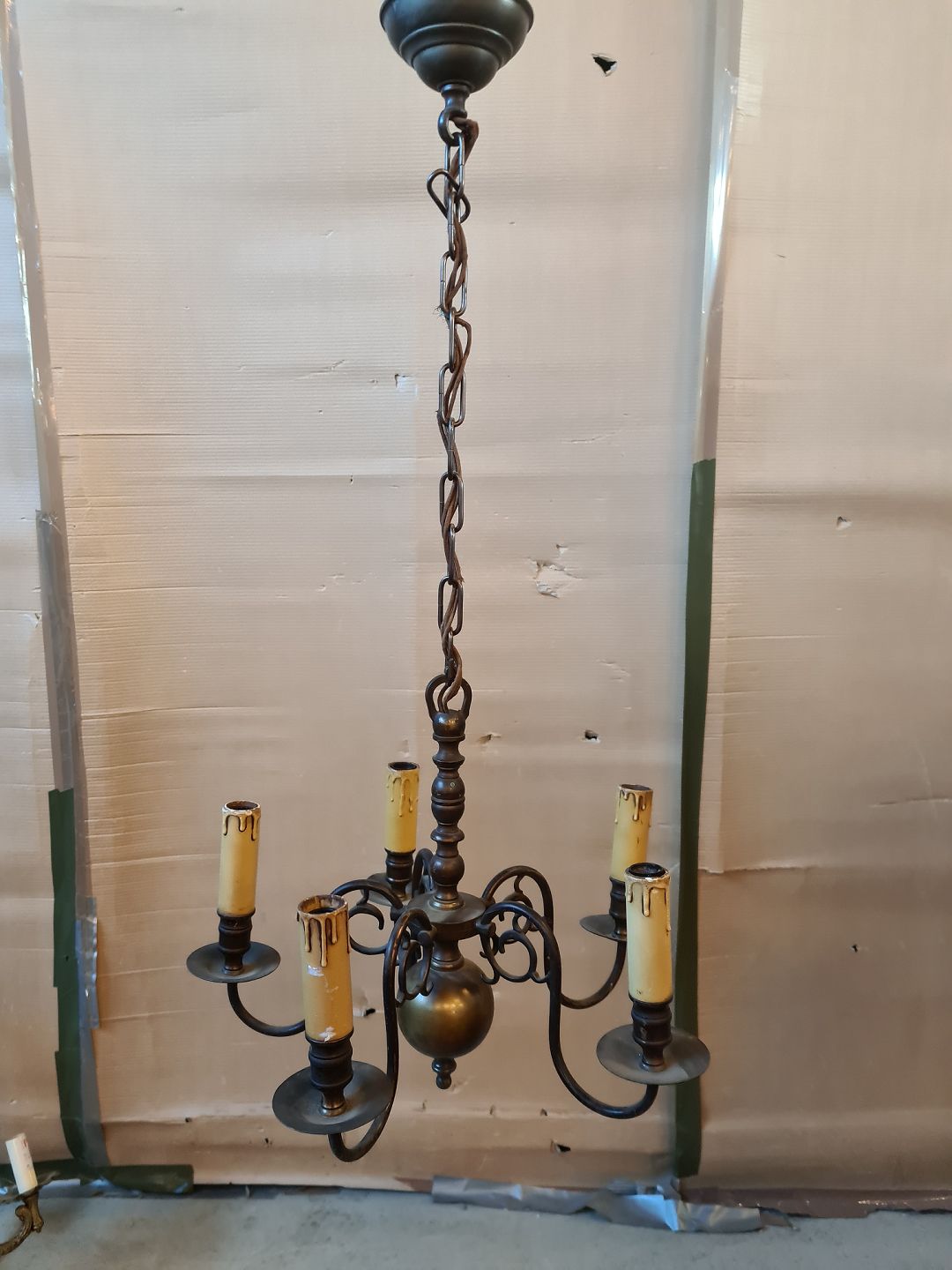 5-Armet kirkekrone i bruneret messing, fra 1930erne.
