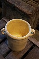 Gammel fransk glaseret keramik krukke med hanke og fin cremefarvet glasur...