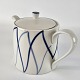 Blå Flamme er hvidt ildfast porcelæn, dekoreret med blå striber, der ligner flammer. Brugsspor kan forekomme