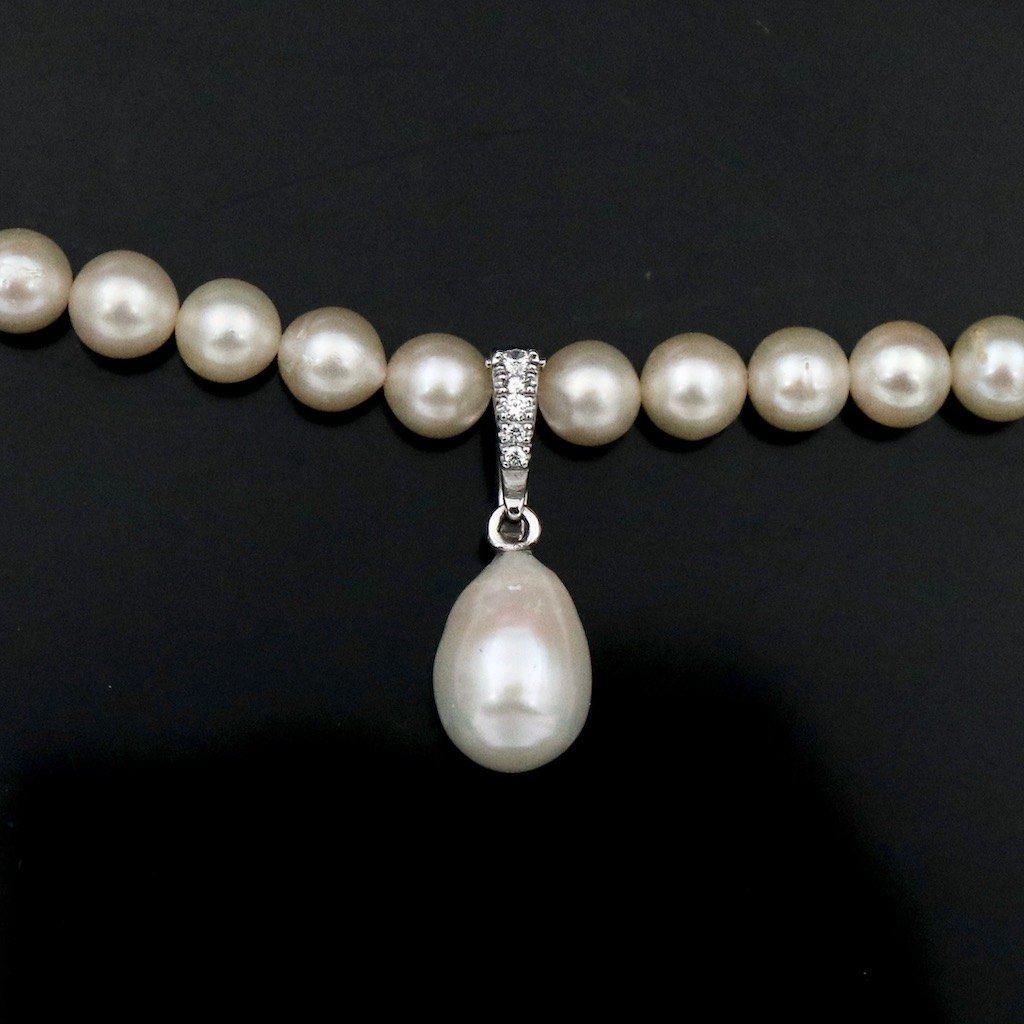 Vedhæng i 18k hvidguld med stor perle og brillanter.