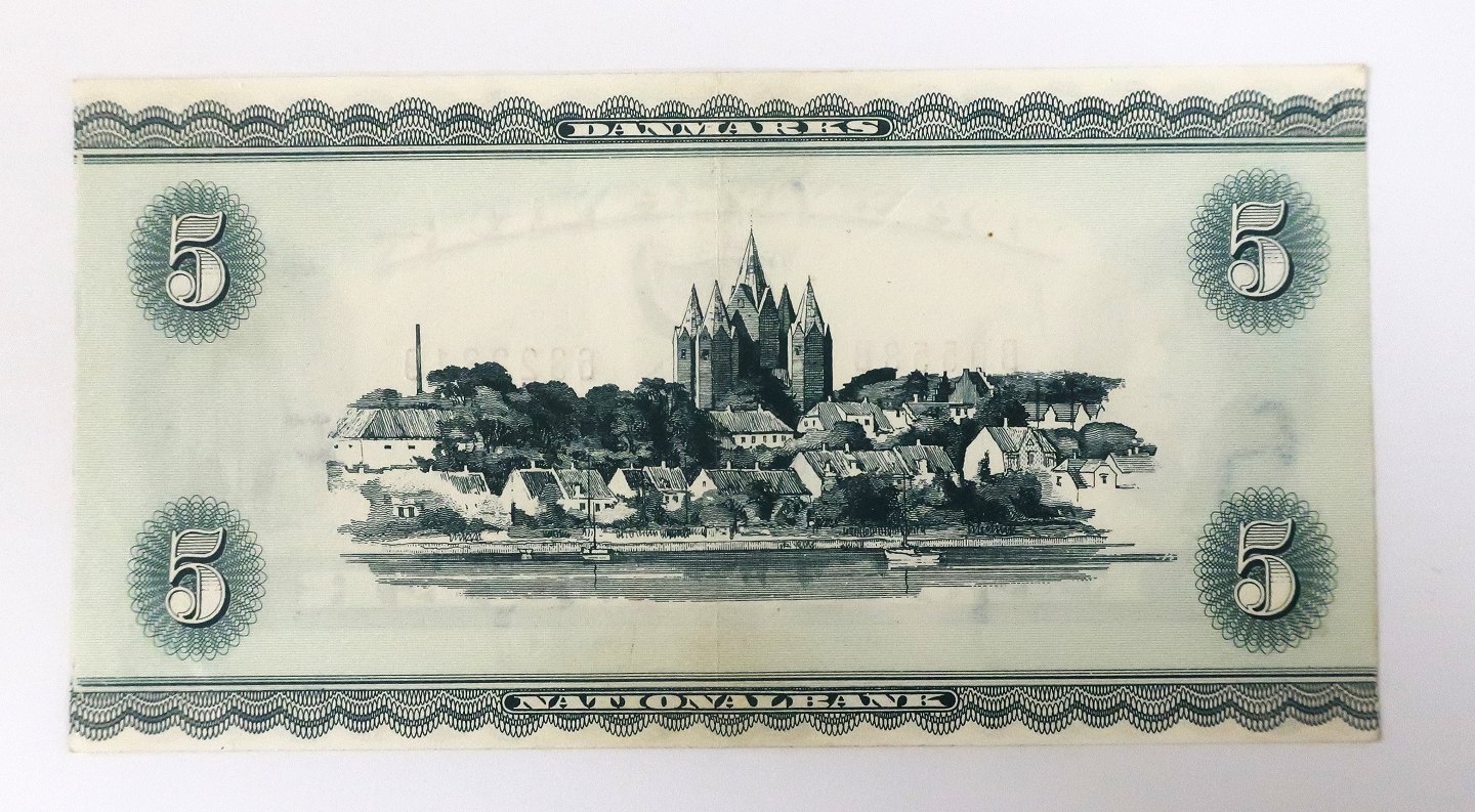 Danmark. Pengeseddel 5 kr. 1955 B0. Kvalitet 01