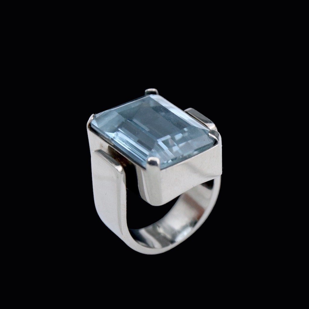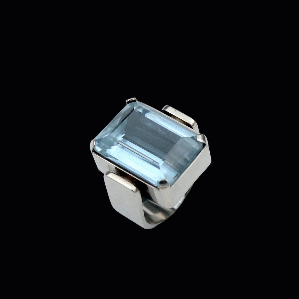 Boy Johansen. Ring i 18k hvidguld med aquamarine.