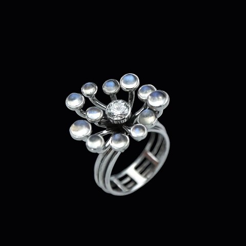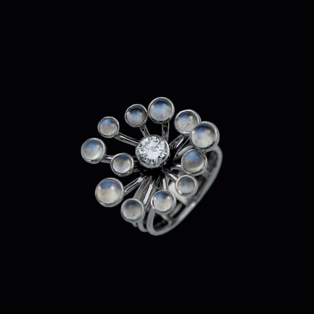 Vilhelm Holmstrup. Ring i 14k hvidguld med månesten og 0,47 ct diamant.