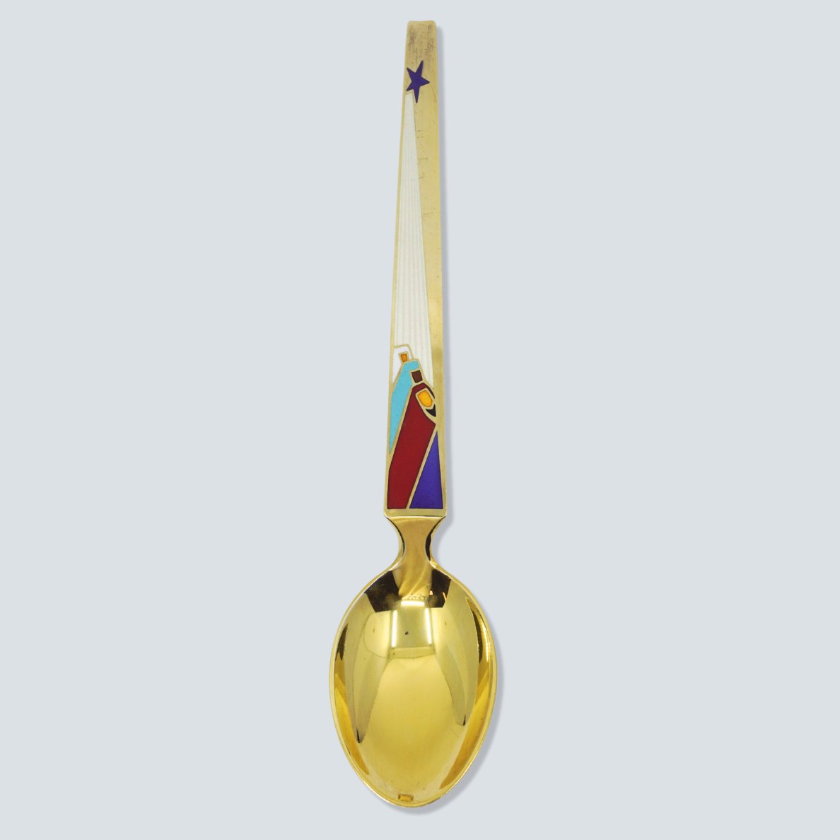 Karl Gustav Hansen for A. Michelsen; Juleske 1958. Juleske af forgyldt sterling sølv med emalje. Design Karl Gustav Hansen.