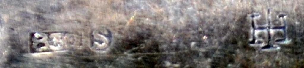 Udført med bladværk og to ravstykker. Stemplet. 7 x 4 cm.