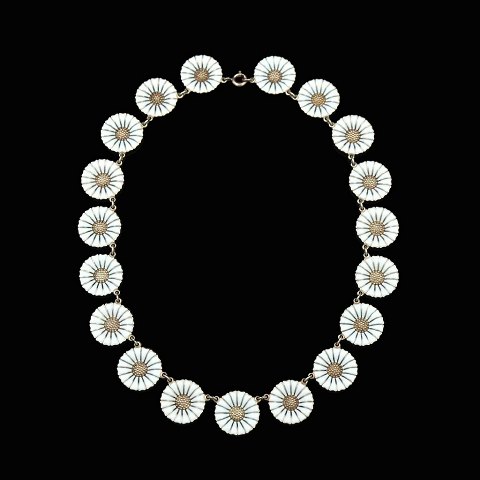 Georg Jensen Marguerit / Daisy Halskæde i forgyldt Sterling Sølv med hvid emalje 18mm.
