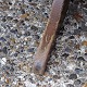Et sæt ældre kontorstole med armlæn og vippefunktion samt stel i lakeret egetræ. Stolene er betrukket med fløjlstof i en dæmpet grøn farve og udsmykket med metalnitter.