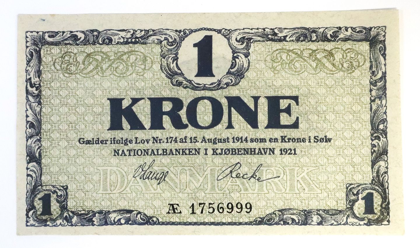 Danmark. Pengeseddel 1 kr. 1921 . Kvalitet 01