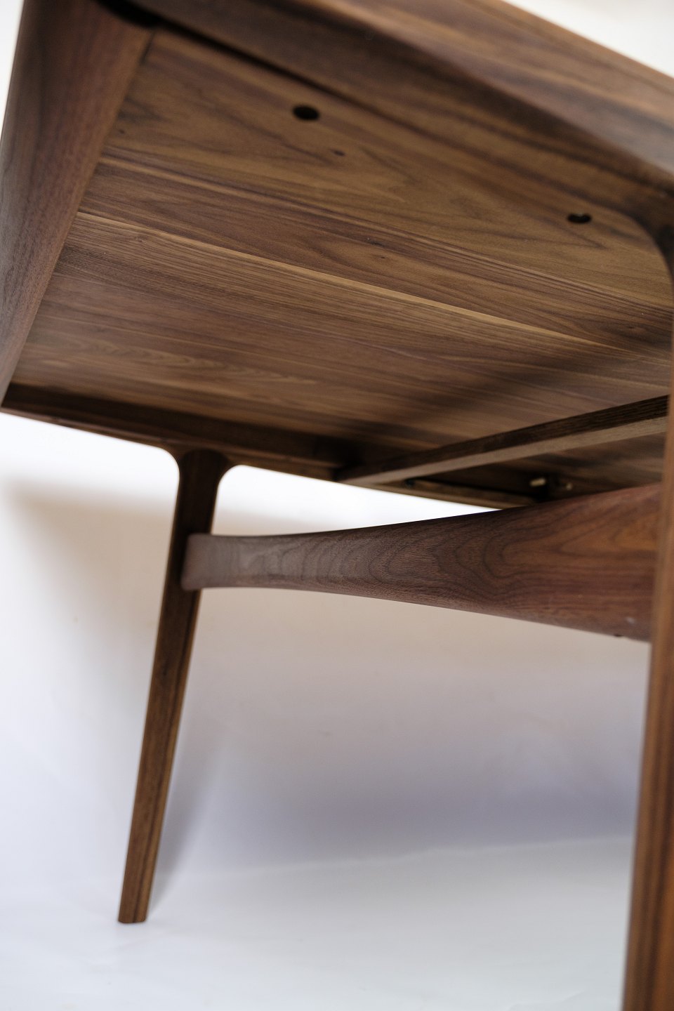 Evermore spisebord, designet af Arne Hovmand-Olsen i 1955 og fremstillet af Warm Nordic, er udført i valnød og repræsenterer et klassisk eksempel på dansk designtradition. Bordet kombinerer tidens minimalistiske stil med organiske former, hvor de lette, afrundede kanter og slanke ben giver det et elegant og harmonisk udtryk.