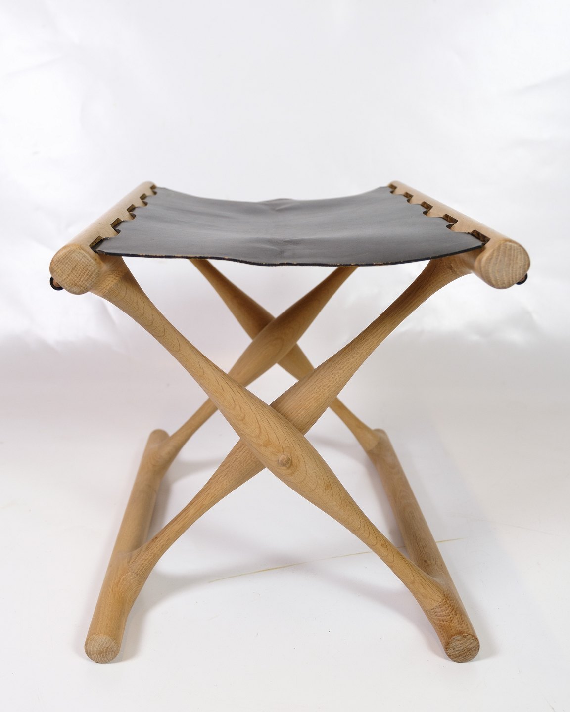 Taburet - Guldhøjstolen - Model PH 43 - Eg - Sæde Af Udspændt Sort Kernelæder - Poul Hundevad