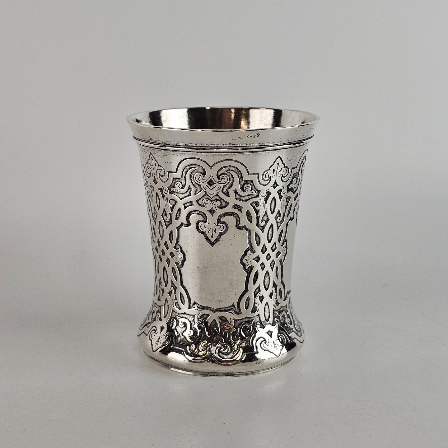 Sølvbæger med udskæringer.