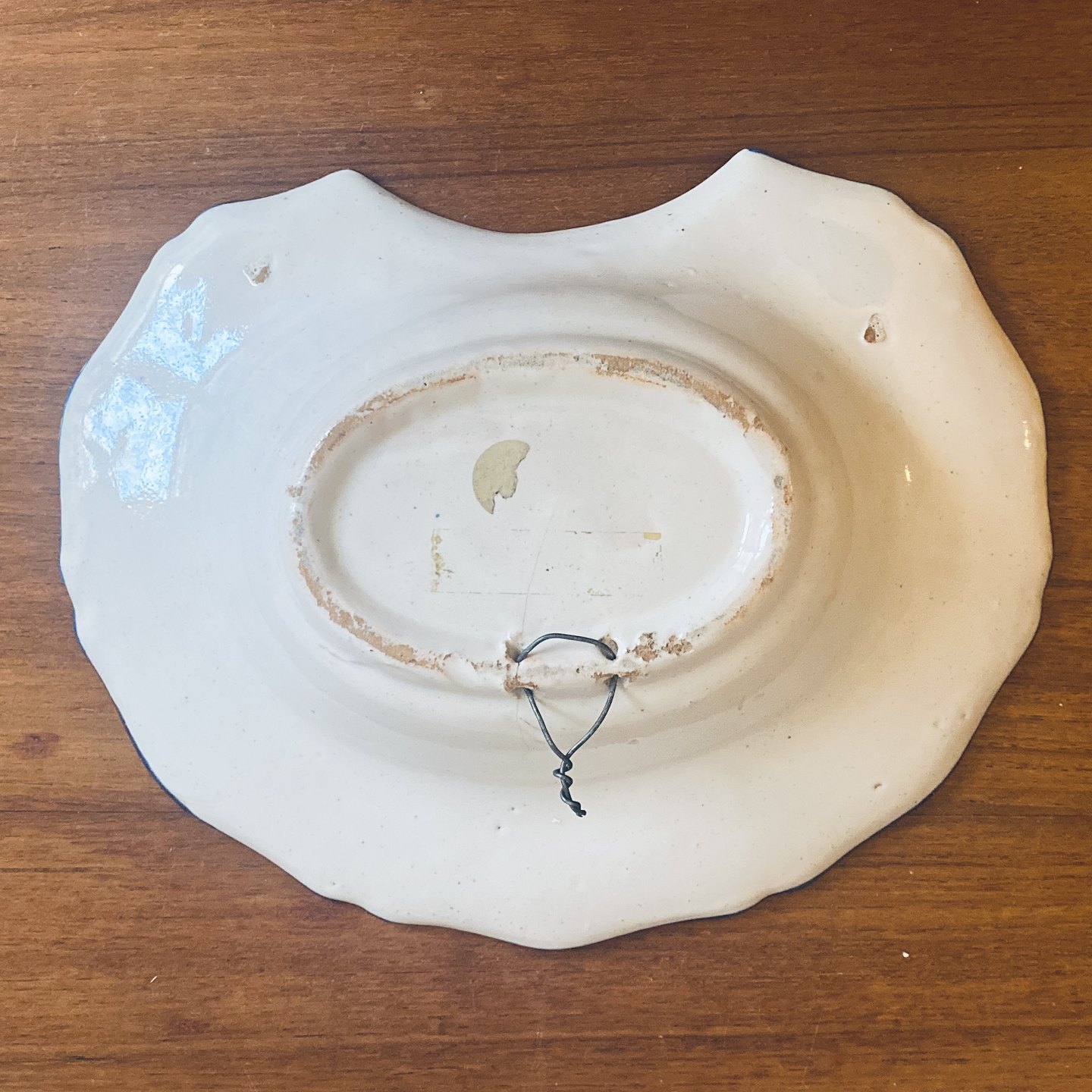 Sjældent barberfad af fajance, Formodes fremstillet i Frankrig ca 1860.