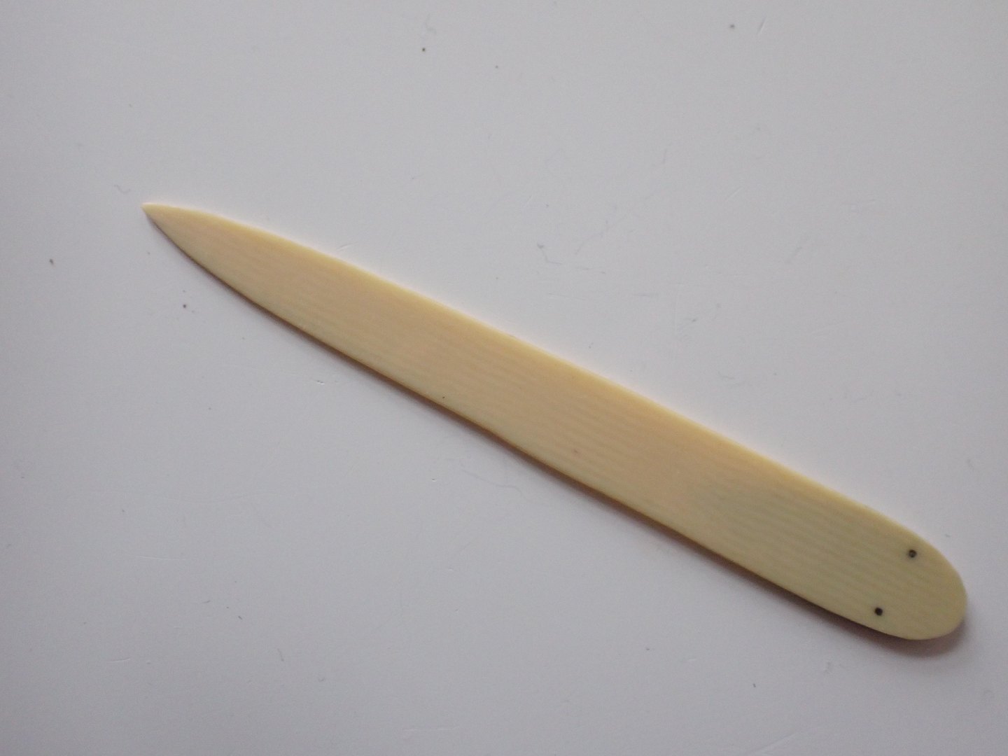 Bogmærke i 830 sølv og ben. Sølvstykket er presset med "Mor Danmark" og de tre løver hvilket tyder på at den er fremstillet efter krigen i 1864. Længde: 9,5 cm. I pæn stand. Pris : 150 kr.