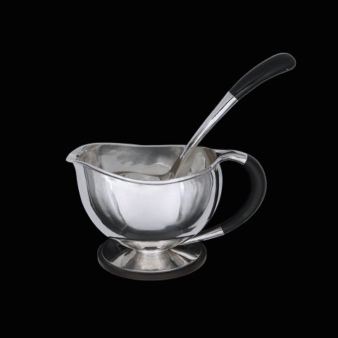 Aage Weimar. Art deco saucekande i sterling sølv med tilhørende ske.