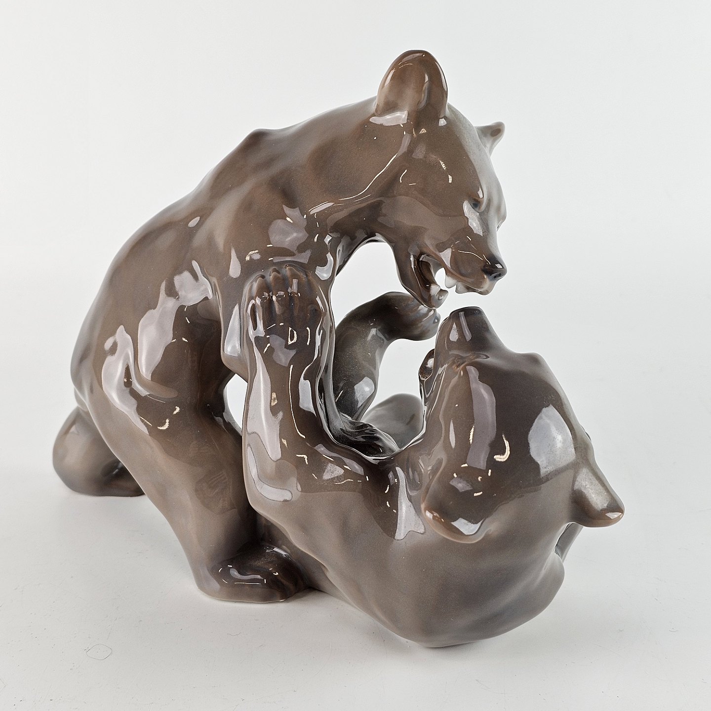 Figur i porcelæn fra Bing og Grøndahl med motiv af to bjørne som slås. Nr 1825.