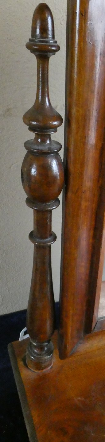Pænt og velholdt vippespejl med skuffe i mahogni fra 1950'erne.