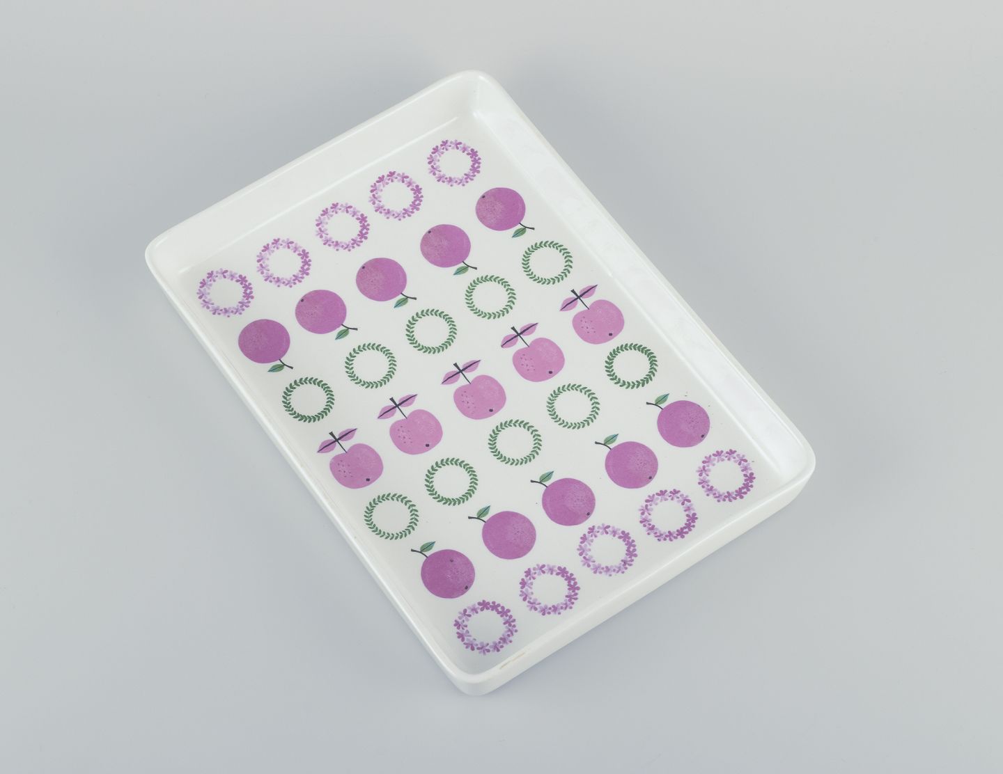 In the early 1960s, he created the colorful and whimsical Pynta series in flintware, which was produced from 1962 to 1965. The series included around 25 items—such as cups, bowls, plates, and butter dishes—decorated with stylized motifs like fish, bottles, lemons, cutlery, and fruit, reflecting a typical 1960s aesthetic.
