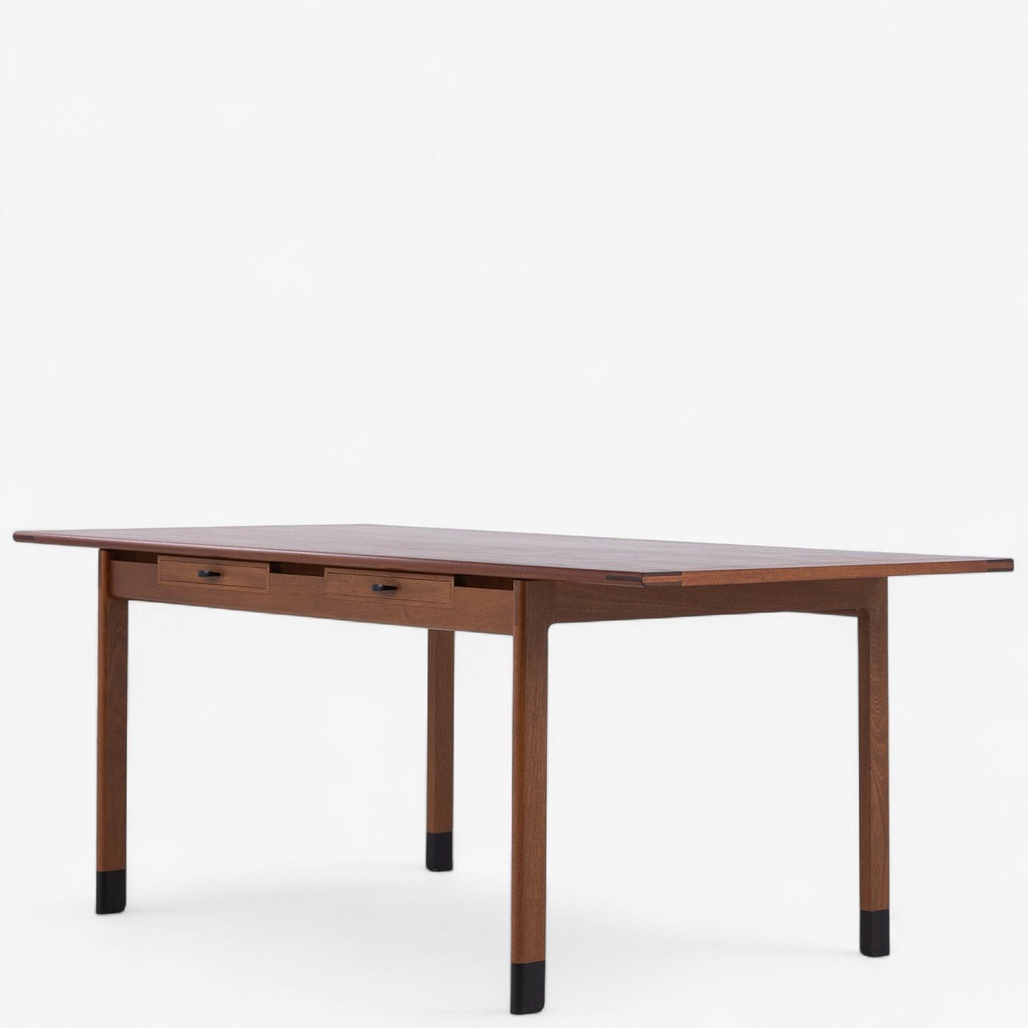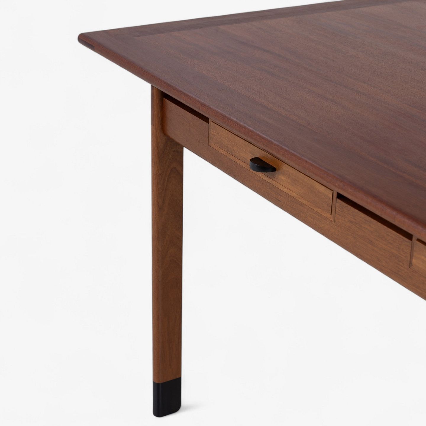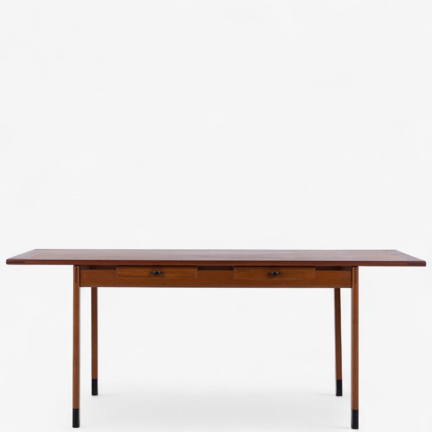 Sjældent skrivebord i mahogni med to skuffer og sko. Formgivet i 1958.