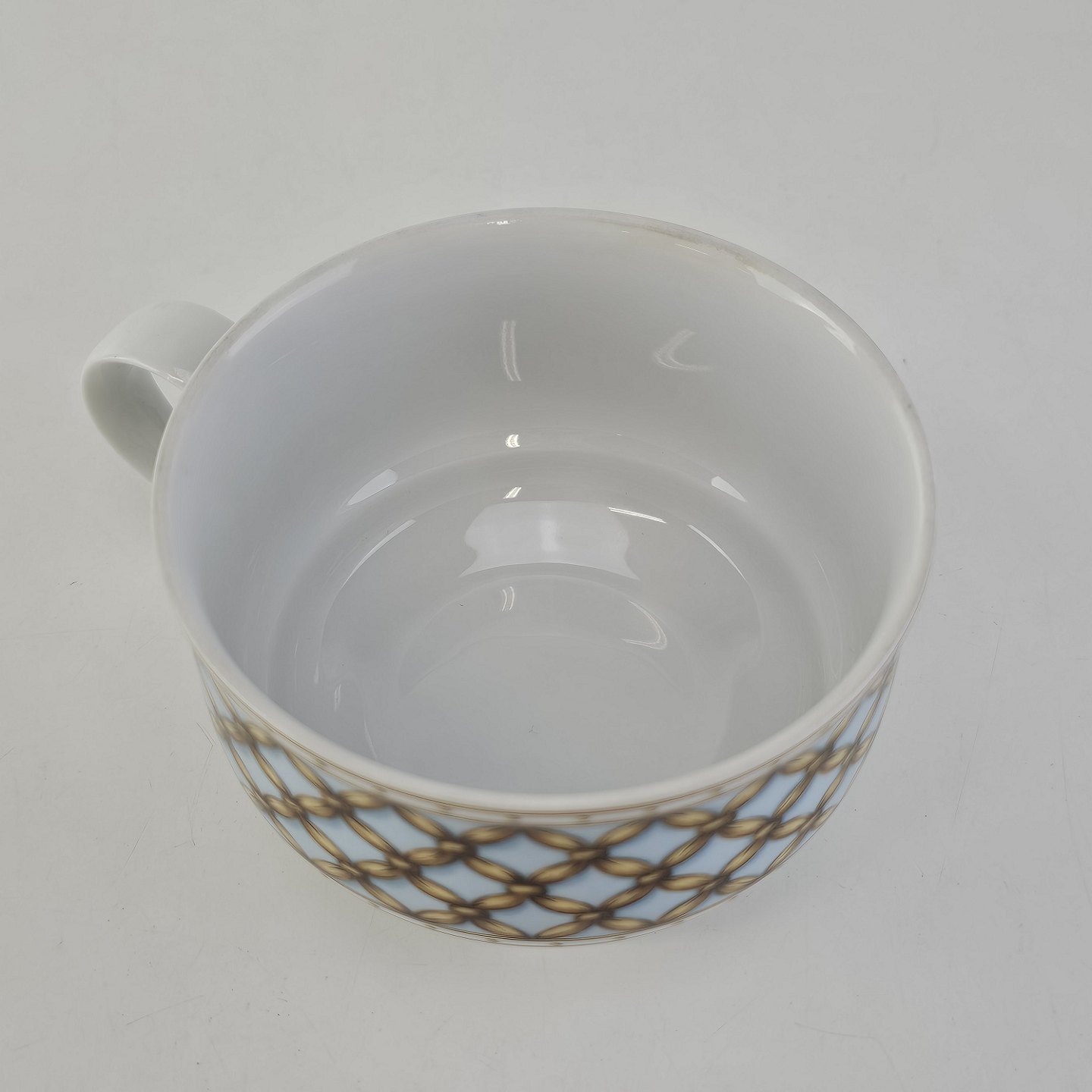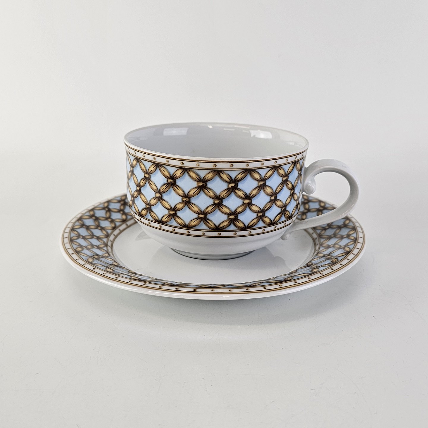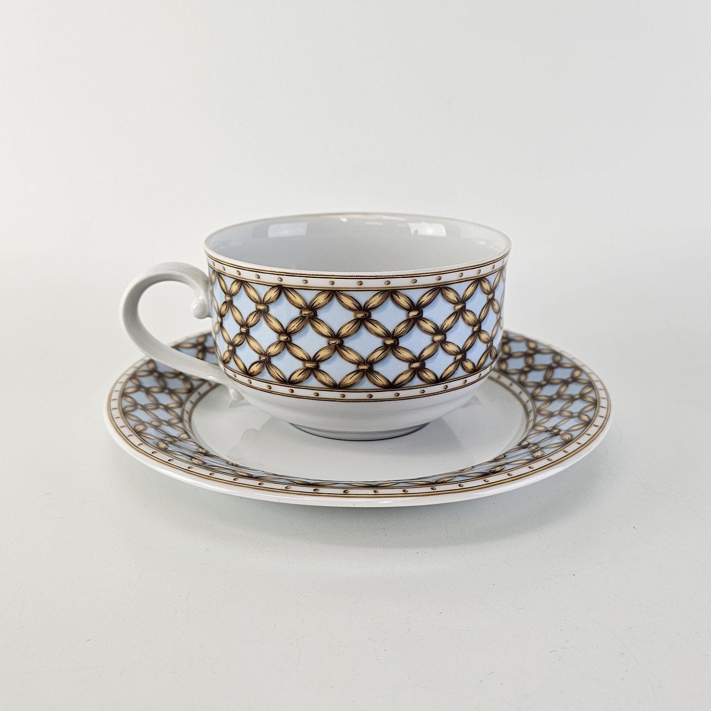 Liselund er hvidt porcelæn dekoreret i lyseblå eller mørkeblå nuancer med fletmønster