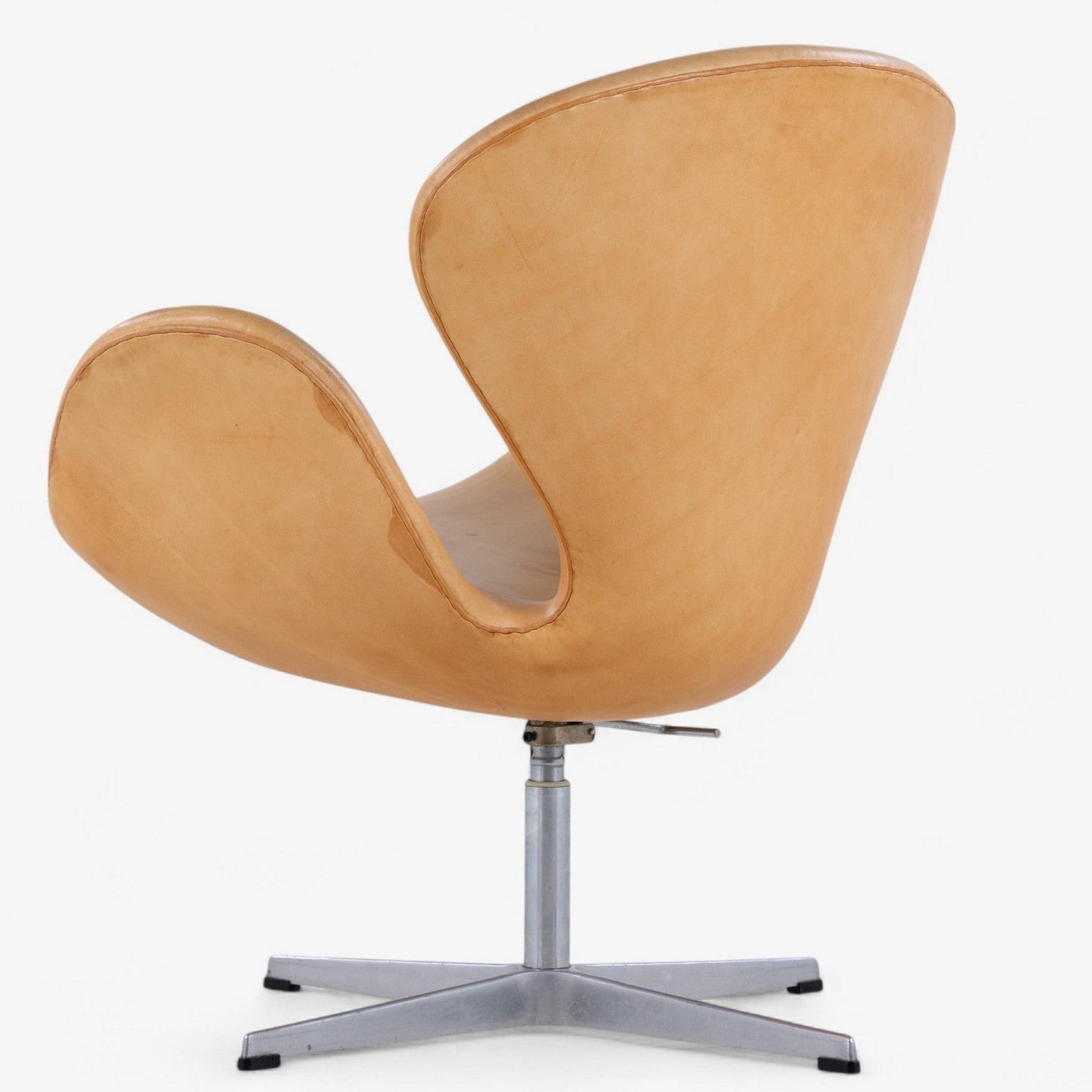 AJ 3320 - 'Svanen'-lænestol i patineret naturlæder på ny fod. Stemplet fra producenten.