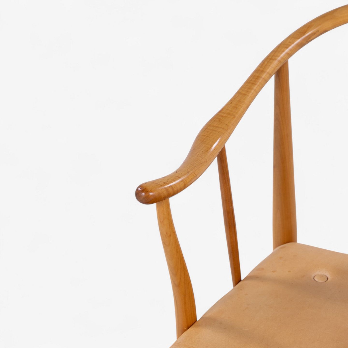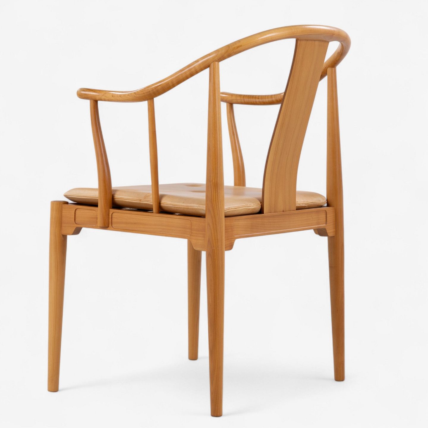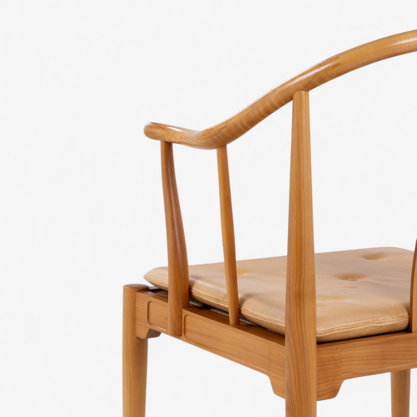 FH 4283 - Kinastol i kirsebær med hynde i patineret naturlæder. Mærket fra producent.
