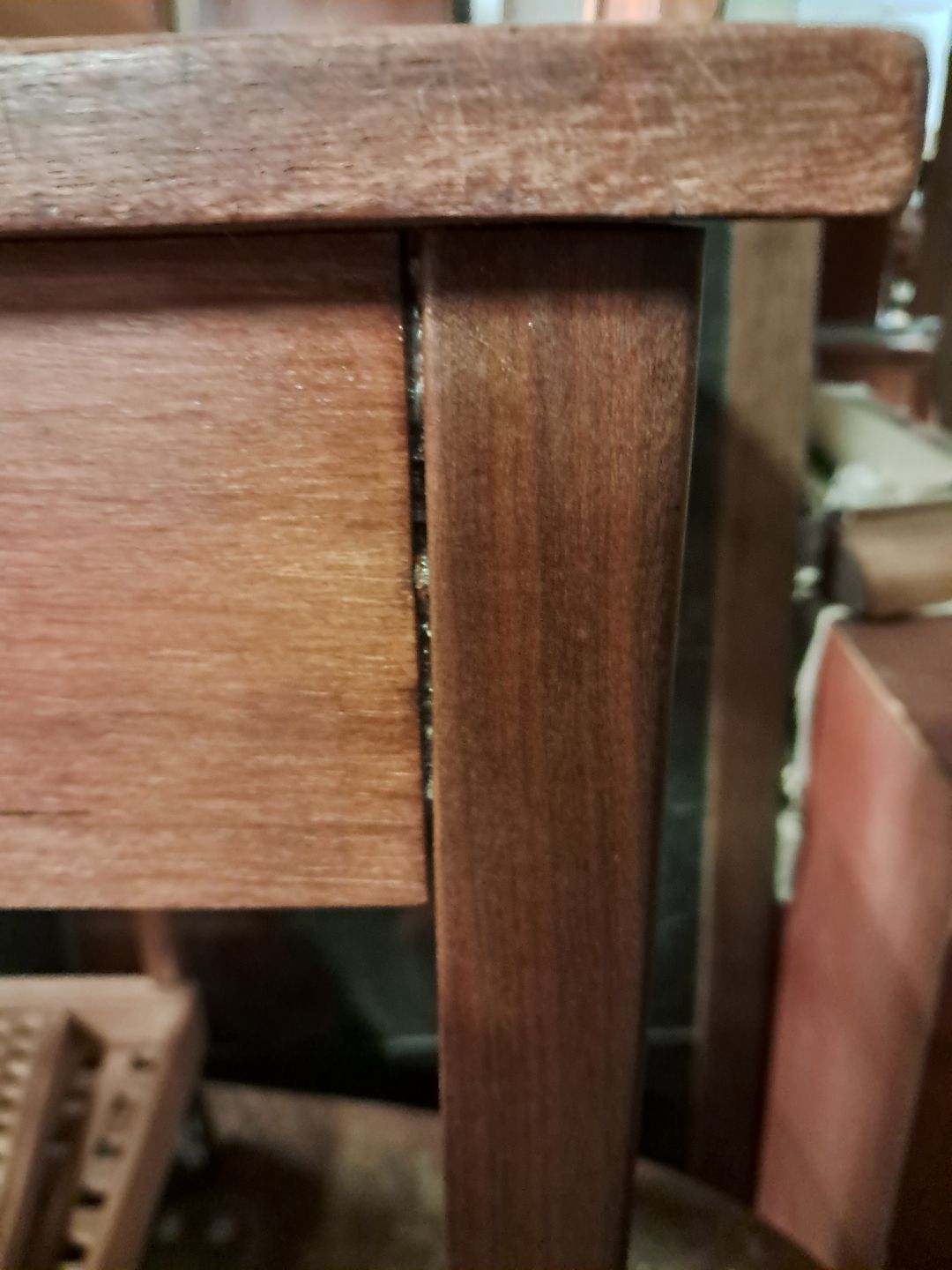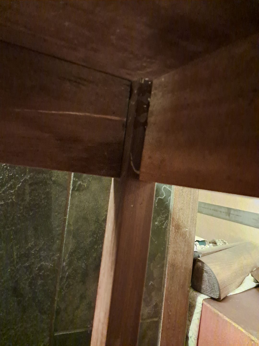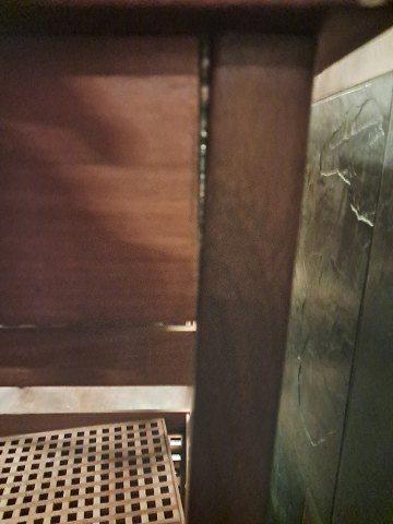 Det har brugsspor og en hjemme-reparation.
