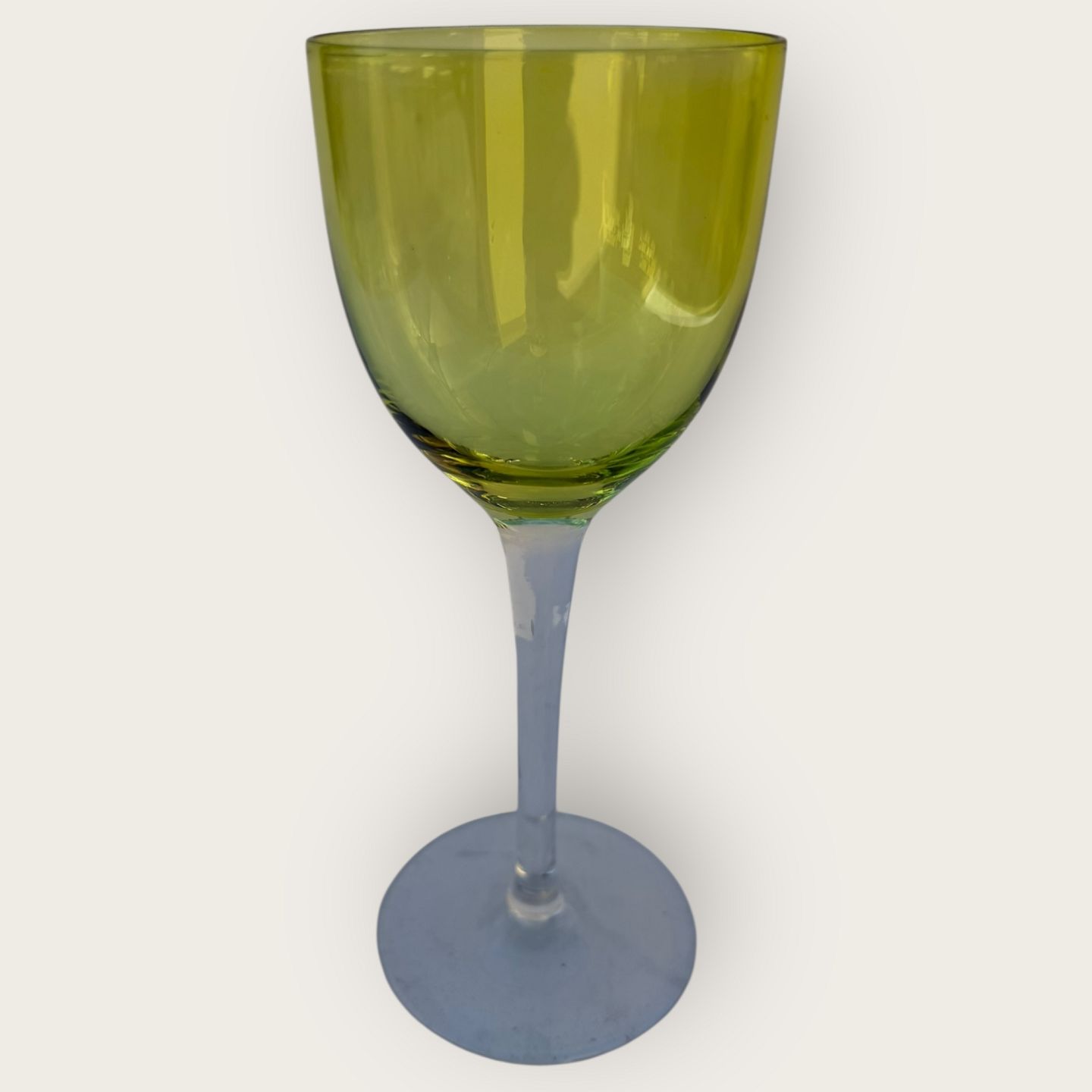 Baccarat, Perfection, Rhinvins glas på høj stilk og med grøn kumme, 19cm høje, fin stand.