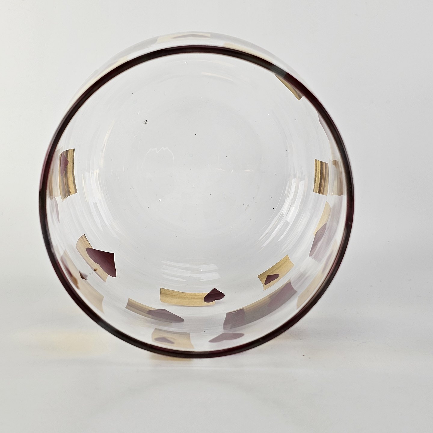 Kagedåse af glas med mønster af røde hjerter og gyldne firkanter