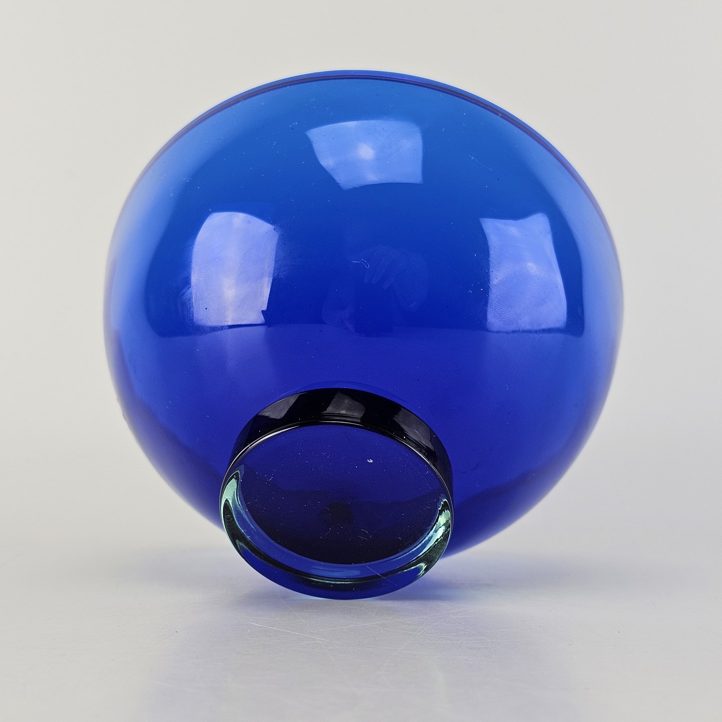 Harlekin skål i gennemsigtigt blåt glas med klart glas i bunden