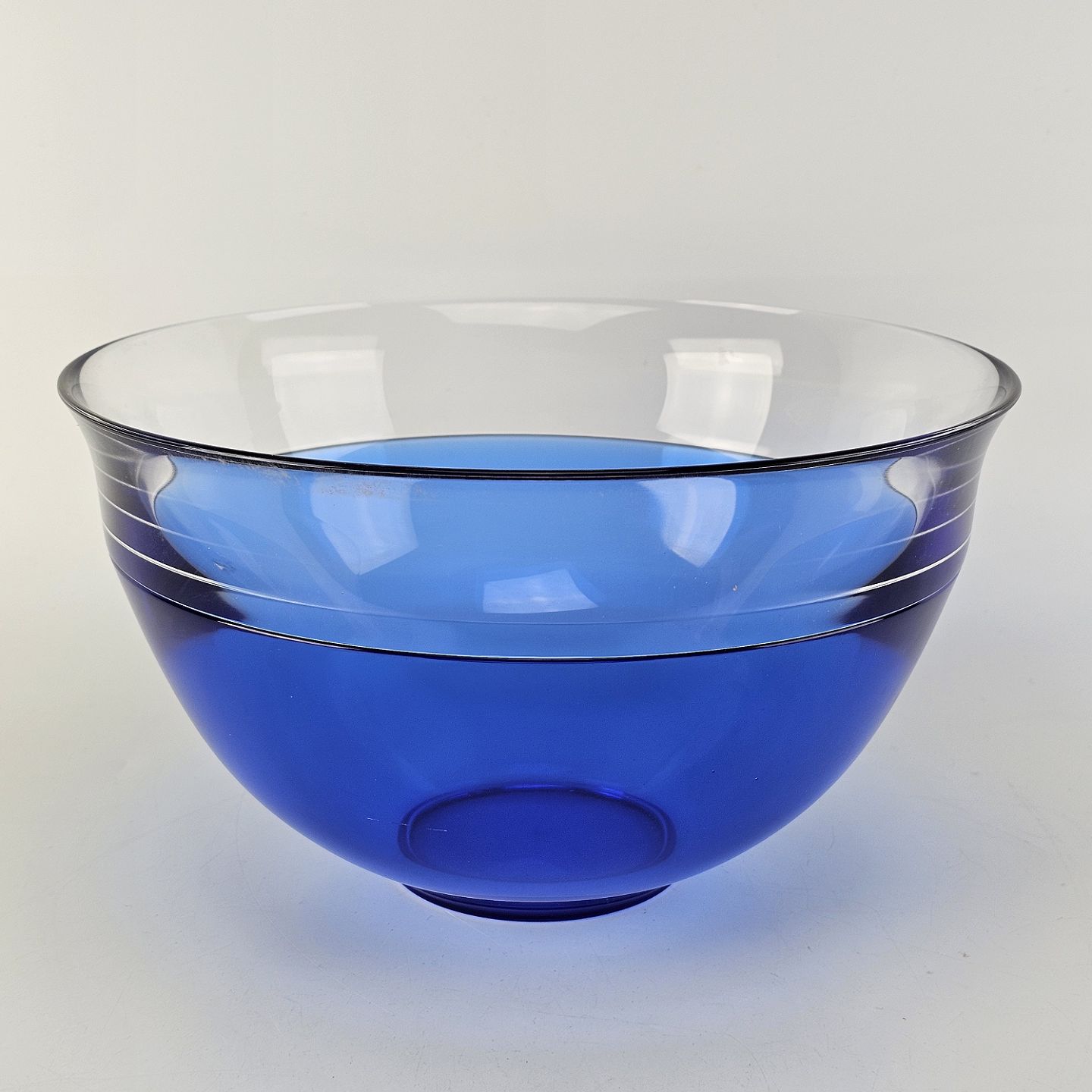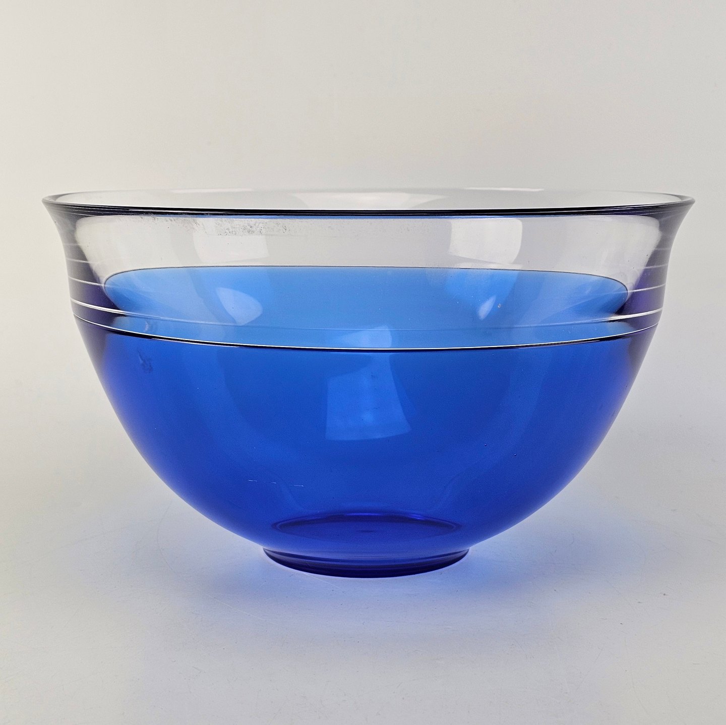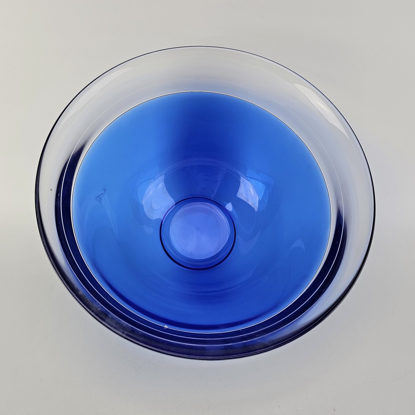 Neptunus skål i blåt glas med kant af klart glas