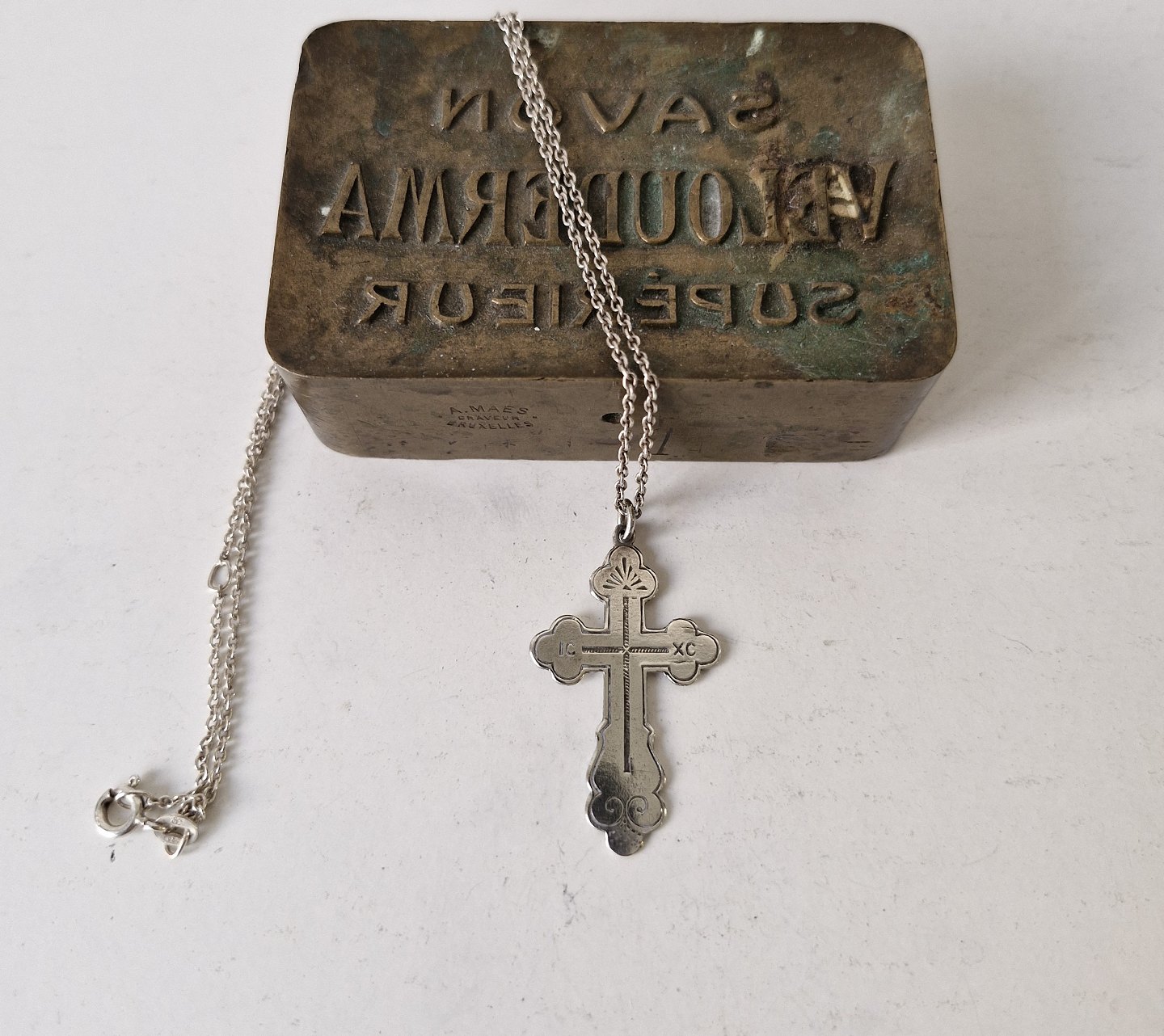 Smukt gammelt sølv kors i sølvkæde