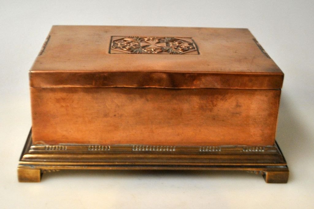 DFDS cigarskrin af kobber og messing, indvendig med træ. 1916. Johan Rohde for Georg Jensen.