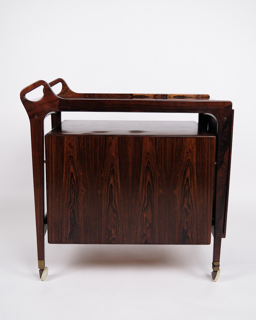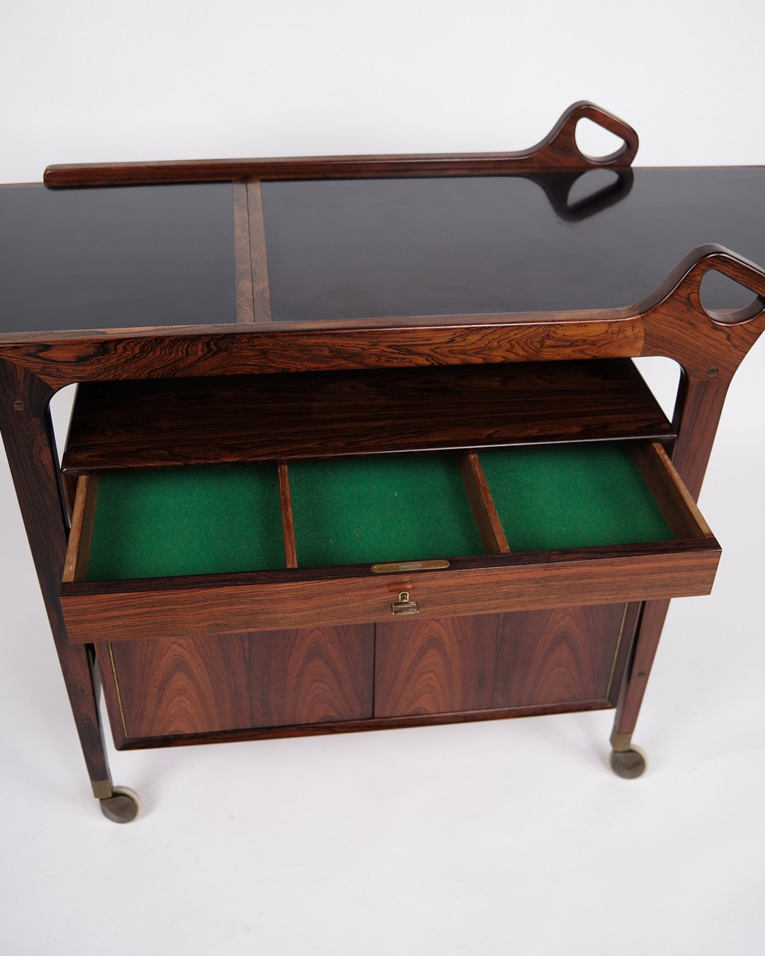 Barskab På Hjul - Foldbar Plade - Palisander & Sort Formika - Håndtag Af Massiv Palisander - Dyrlund