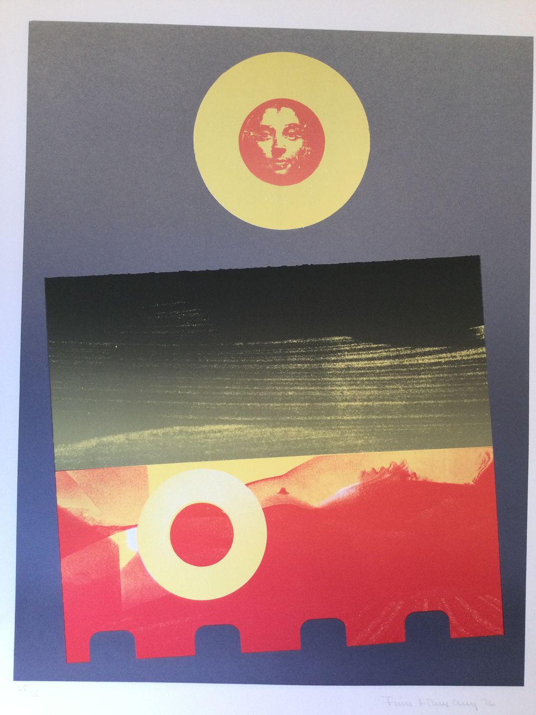 Farvelitografi af Finn Lohmann - Komposition 1976.