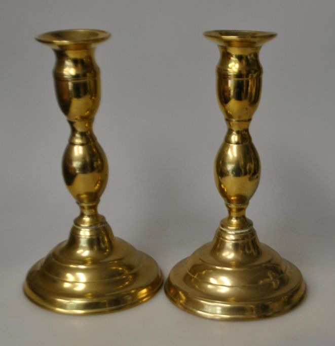 Par danske empirestager i messing, ca. 1820. Ustemplet. H.: 16 cm.