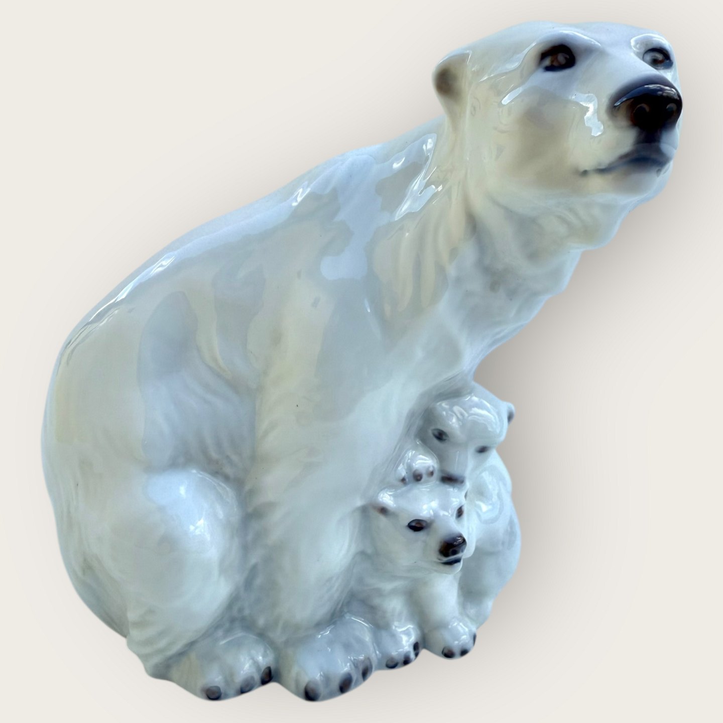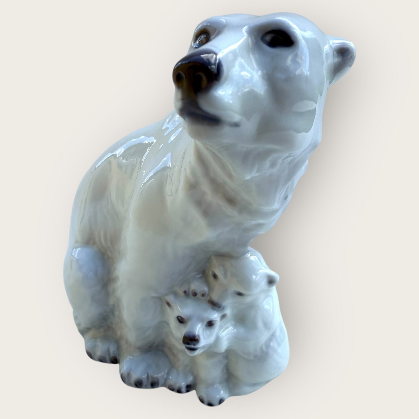 | Lyngby Porcelæn, Isbjørn med unger, #98, 1.sortering, Mål ca. 17,5x17,5x10cm *fin stand*