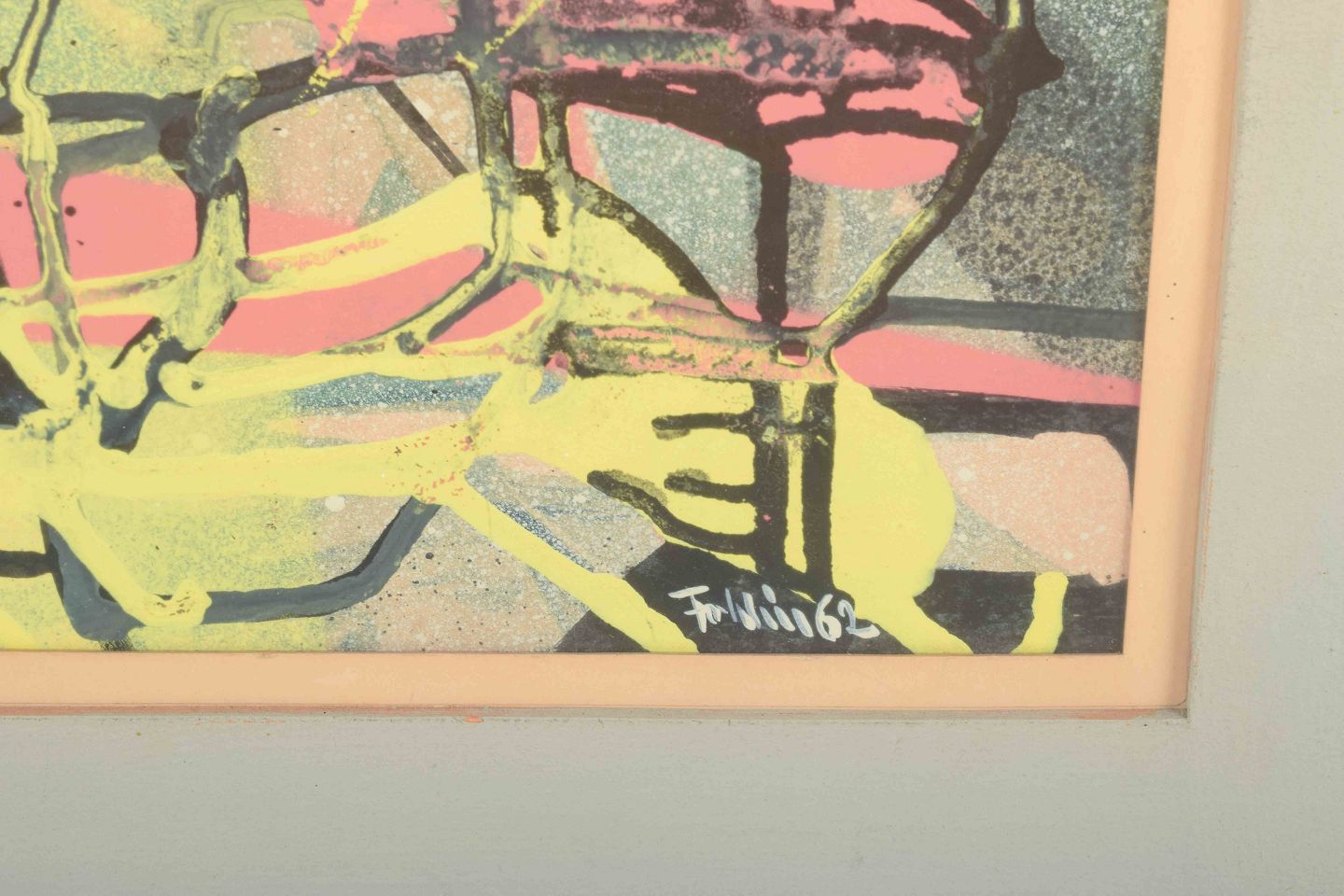 Et dynamisk abstrakt værk udført i gouache, hvor lag af organiske linjer og transparente farver væves sammen til en ekspressiv helhed. Værket demonstrerer Föhlíns karakteristiske sans for rytme, bevægelse og farvespil, som knytter ham til den nordiske modernismes formsprog