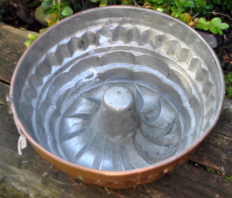 Kage/budding form i kobber, 19. årh. H: 11,5 cm. Dia: 25,5 cm.