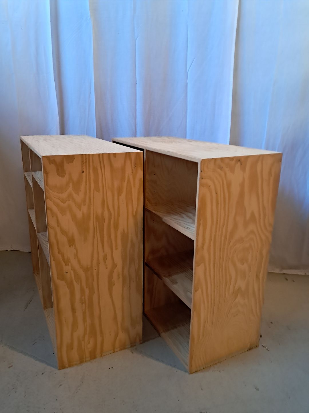 2 Reolkasser i krydsfiner, fra 2000erne.