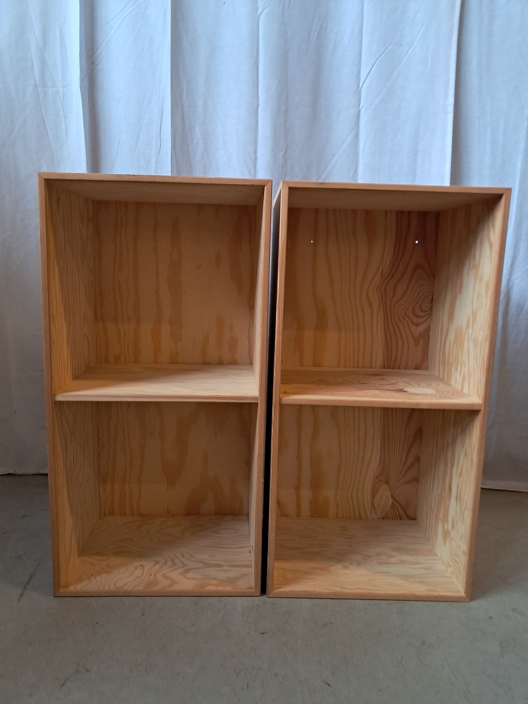 2 Reolkasser i krydsfiner, fra 2000erne.