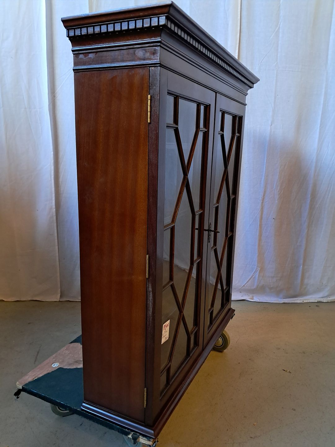 Vitrineskab i fineret mahogni, fra 1980erne.