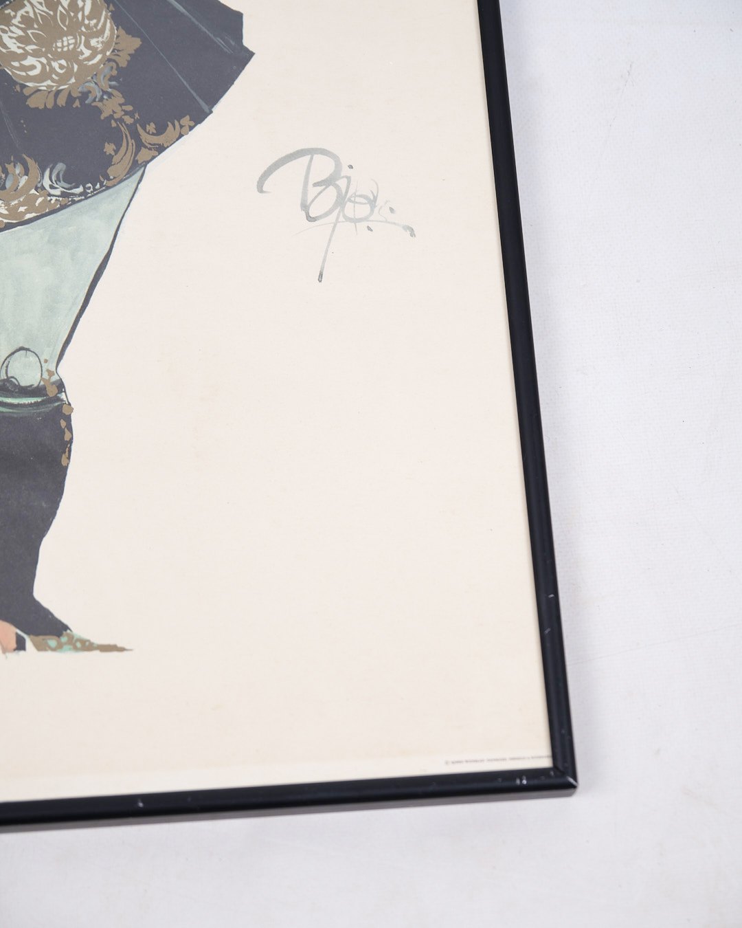 Litografisk tryk signeret af Bjørn Wiinblad. Indrammet i sort ramme. Dekorativt og tidløst kunstværk.